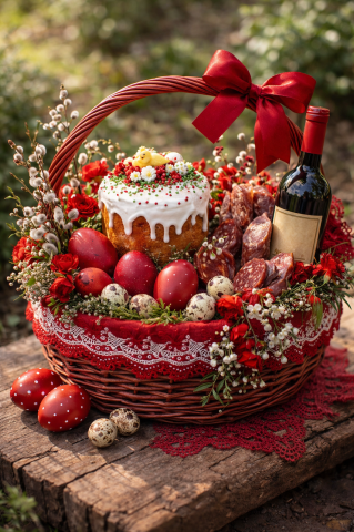 Підбір продуктів у кошику на свято Великодня не є випадковим. Кожен продукт має символічне значення. Великодній кошик, або «свячене», повинен складатися з таких страв: паска-бабка, сир-масло, яйце-писанка, шинка-ковбаса, хрін, букшпан або мирт, сіль.